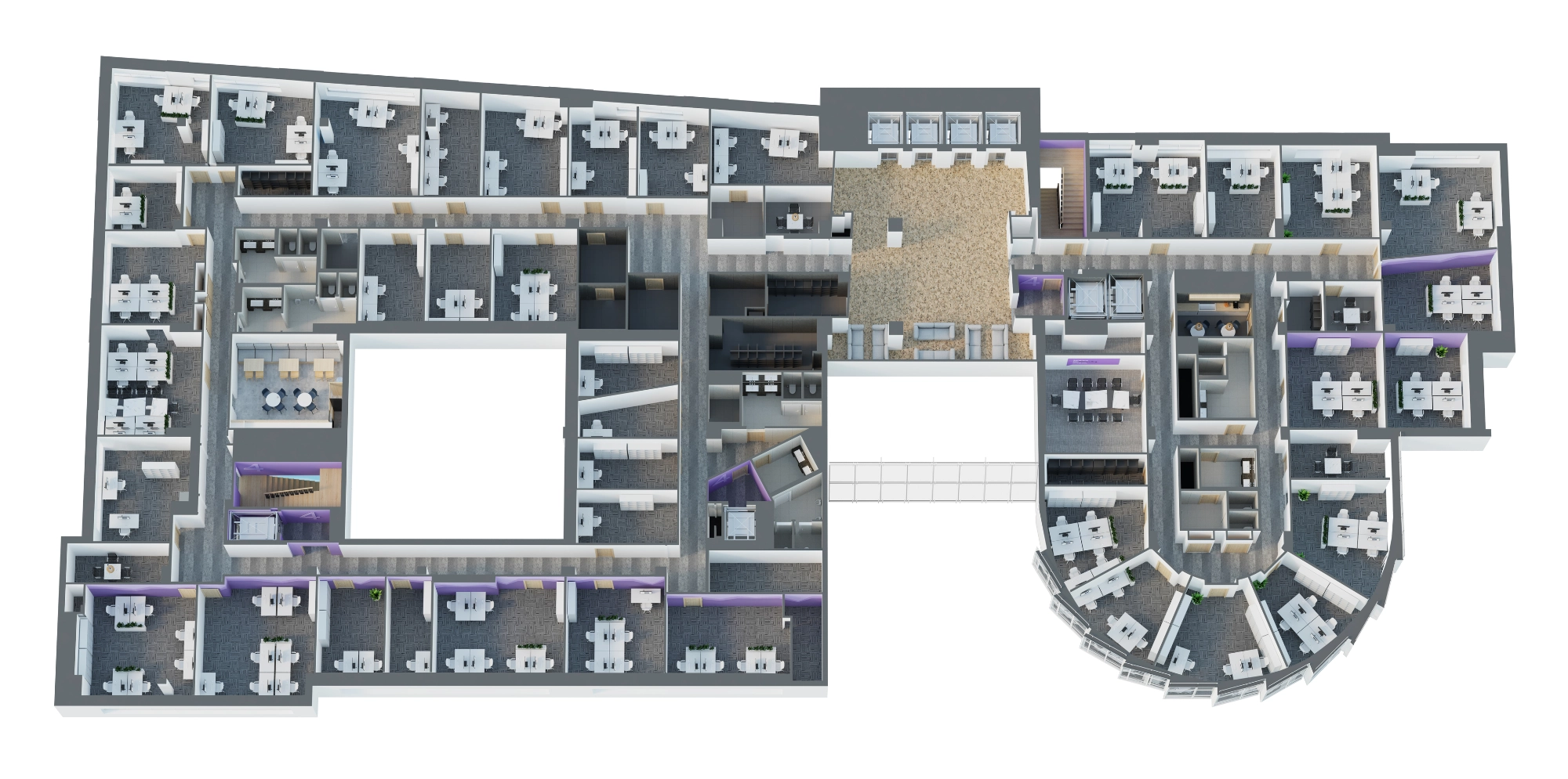 W ofercie znajdują się zarówno pojedyncze pokoje, jak i niezależne moduły o powierzchni 200 m², 275 m², 500 m² czy 900 m². Możliwy jest również najem całej kondygnacji o powierzchni 1600 m².