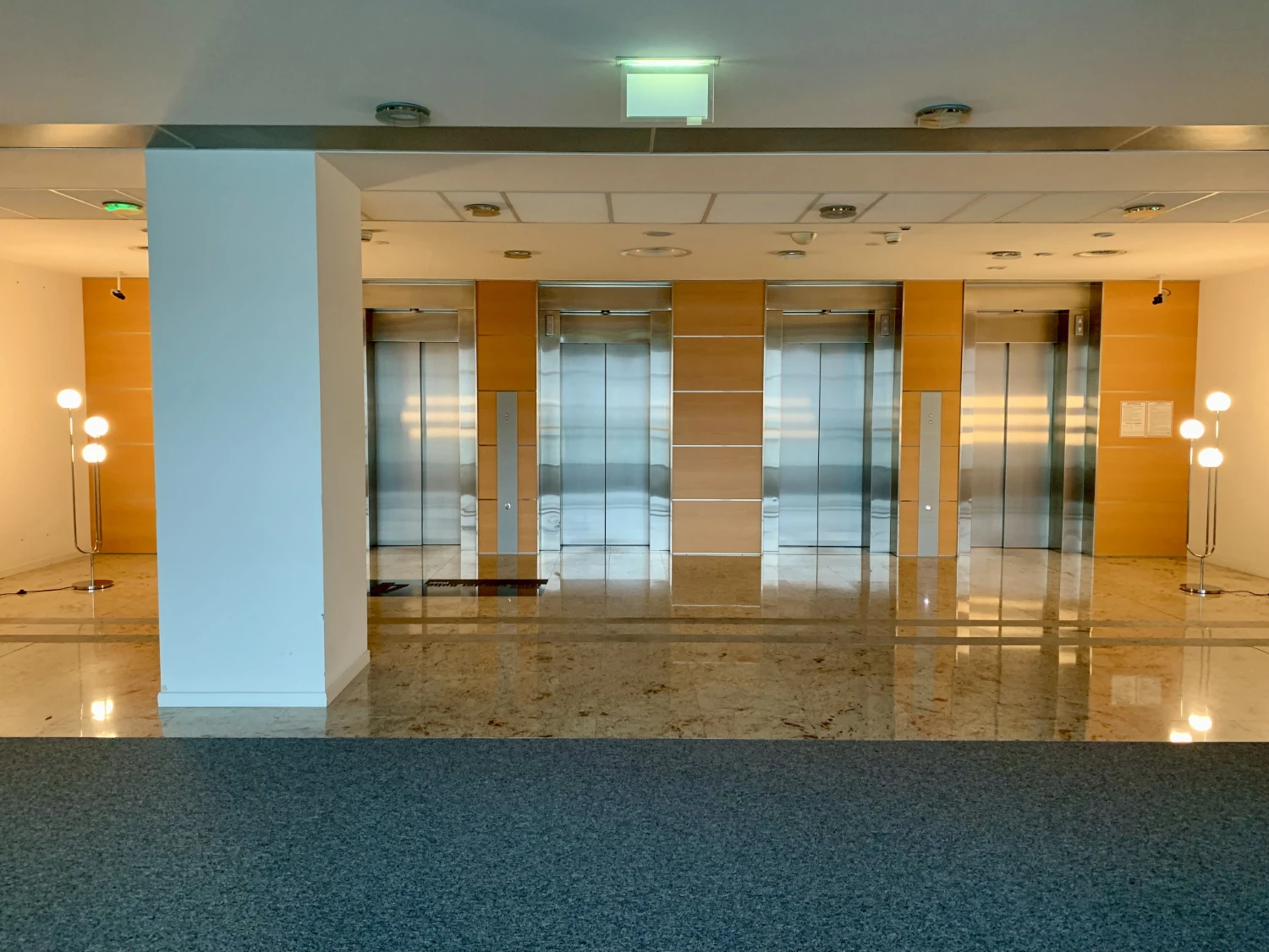 W obiekcie znajduje się siedem wind, w tym jedna towarowa, co zapewnia wygodny i szybki dostęp do wszystkich kondygnacji.